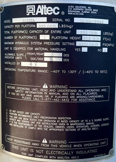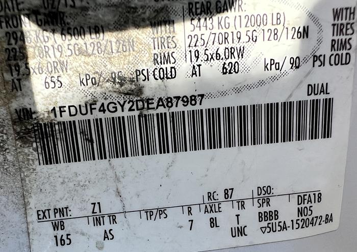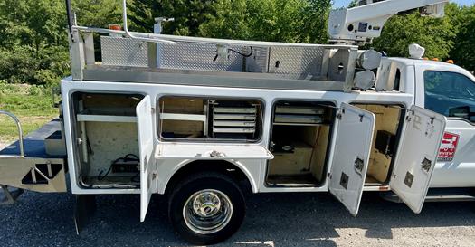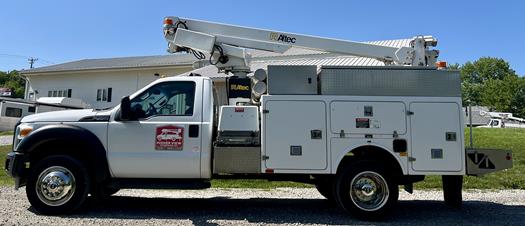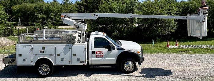 2013 Ford F450 Bucket/Boom Truck Service/Utility Truck VIN: 1FDUF4GY2DEA87987 10 Cylinder Gas Engine June 2025 DOT Inspection Automatic Transmission Altec AT200-A Boom June 2025 Annual Boom Inspection 35' Working Height Non Insulated Boom Toggle Switch Controls Single Man Bucket 350lb Bucket Capacity Cummins Onan Commercial QG EFI Generator Bucket Dumps NO OUTRIGGERS Fiberglass Utility Body 7 Storage Compartments 2 Diamond Plate Storage Boxes Beacons with Cab Controls 2 Bucket Seats AC Heat AM/FM Stereo Cruise Control 12 Volt Plugs Single Axle/Dual Wheel 19.5" Tires with 50% Tread Depth Remaining Mud Flaps 10’ 6” Travel Height 18,500lb GVWR 165” Wheelbase 108,066 Miles