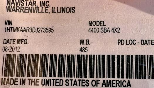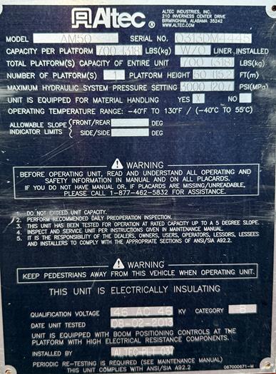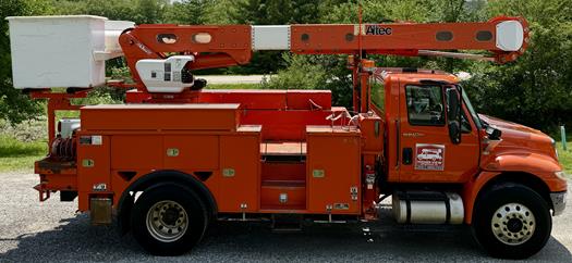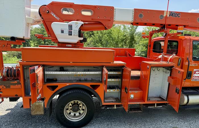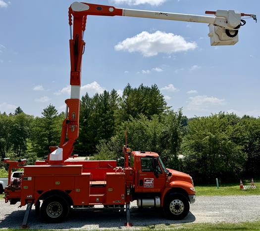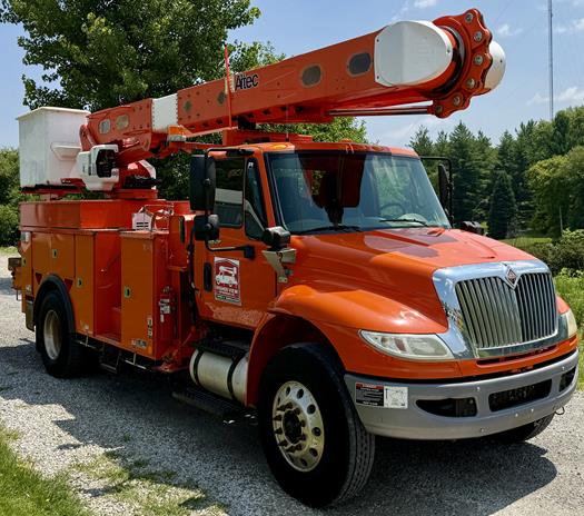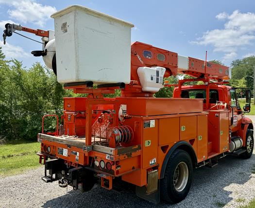 2013 International 4400 Bucket/Boom Truck Service/Utility Truck VIN: 1HTMKAAR3DJ273595 7.6L Diesel Engine Allison Automatic Transmission Altec AM50 Boom SN: 0313DM4445 55' Working Height 4,908 PTO Hours 2 Man Bucket Bucket Liner 700lb Capacity Pistol Grip Upper Controls Joystick Lower Controls Over Center Rear Mounted Boom Material Handler with Hydraulic Jib 1,500lb Capacity with 4’ Max Extension 4 Hydraulic Outriggers 10 Storage Compartments 2 Utility Box Top Storage Boxes Beacons with Cab Controls Wheel Chalk and Outrigger Pad Storage 2 Piece Bench Seat AC Heat AM/FM Stereo Cruise Control Cup Holders 12 Volt Plugs Air Brakes Single Axle/Dual Wheel 22.5" Tires with 80% Tread Depth Remaining Mud Flaps Alcoa Wheels 11’ 8” Travel Height 10,649 Engine Hours 136,033 Miles